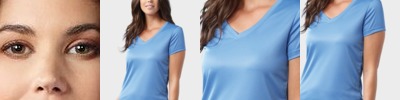 - Heather colors: 77/21/2 polyester/rayon/spandex