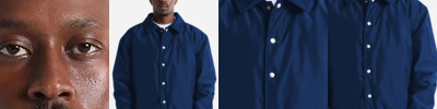 - Metal snap closures at collar stand, welt pockets and sleeve cuffs