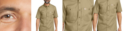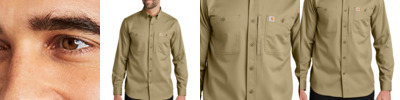 Clean and simple, this button-down work shirt can do it all. A triple-stitched, wrinkle-free design maintains a professional appearance, day in and day out. 5-ounce, 58/39/3 cotton/poly/spandex Rugged Flex ® durable stretch technology for ease of movement Button-down collar Two chest pockets with button closures Left chest map pocket with zipper closure Carhartt label sewn on left chest pocket Carhartt-strong, triple-stitched main seams Relaxed fit