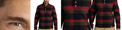- Three-button placket with dyed-to-match buttons